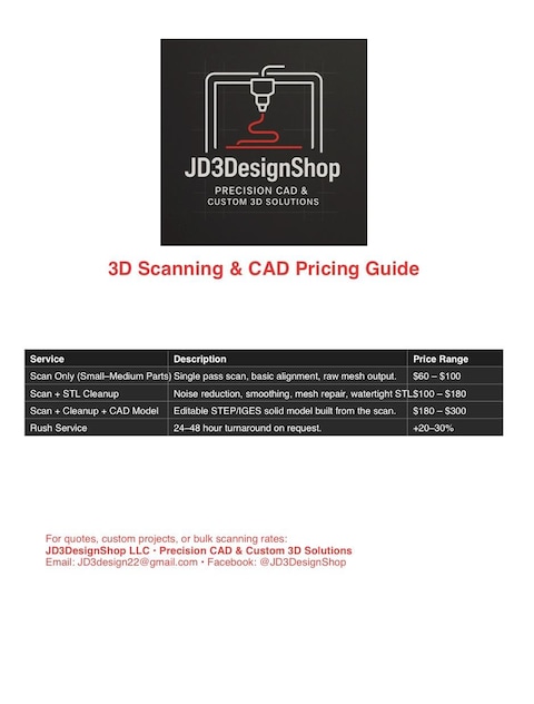 High precision 3d Scanning and custom CAD Modeling for automotive parts, RC Parts, Home improvement, Repairs, and Prototyping. Services include scan-to-CAD, STL/STEP files, Reverse engineering, and 3D-print-Ready models. Perfect for replacements, modifications, or Custom designs.