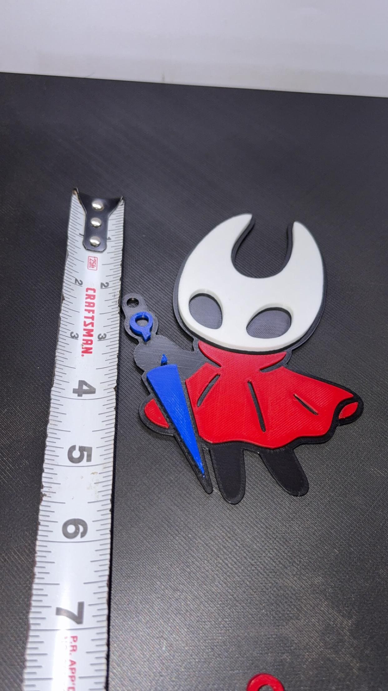 Each piece is crafted with precision from durable PLA filament using multi-color layering to capture Hornet’s iconic white mask, red cloak, and blue needle weapon in crisp, vibrant detail.