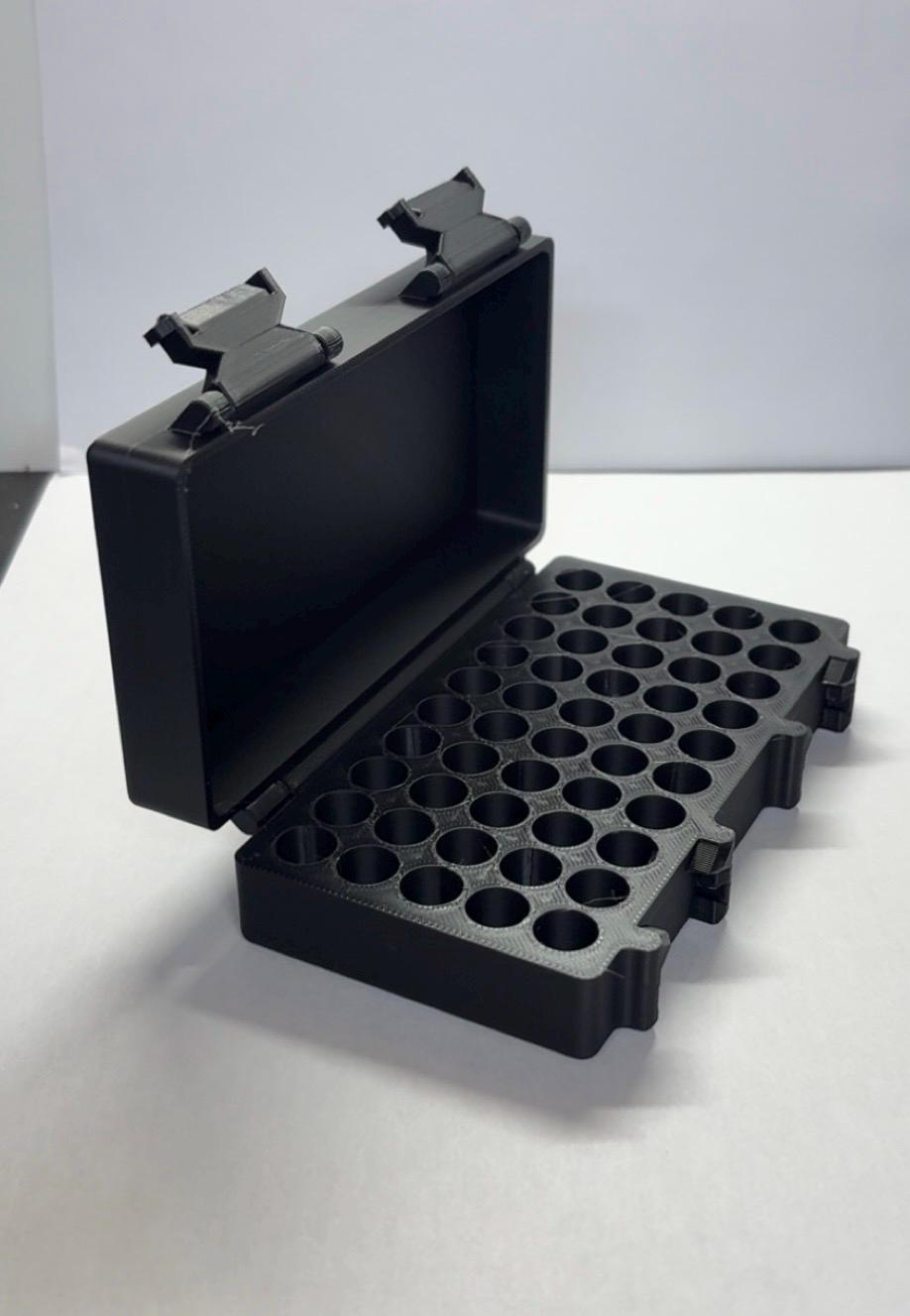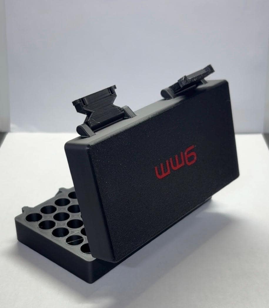 Keep your ammunition organized, protected, and ready when you need it with this premium 3D-printed 9mm ammo case. Designed for durability and everyday use, this compact case features precision-cut round slots, smooth dual-hinge functionality, and secure snap latches that keep everything firmly in place.